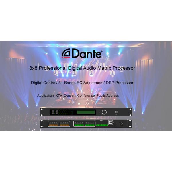 Audio Effects Processor is a computer audio controller with digital audio controller, 8 in 8 out Dante audio matrix controller. It has an Ethernet connection and a dynamic range greater than 100dB. It supports four sampling rates, 44.1/48/88.2/96 KHz, and is equipped with an external power supply. With a weight of only 1.54 lbs, the Dante Audio Controller offers portability with uncompromising sound quality.